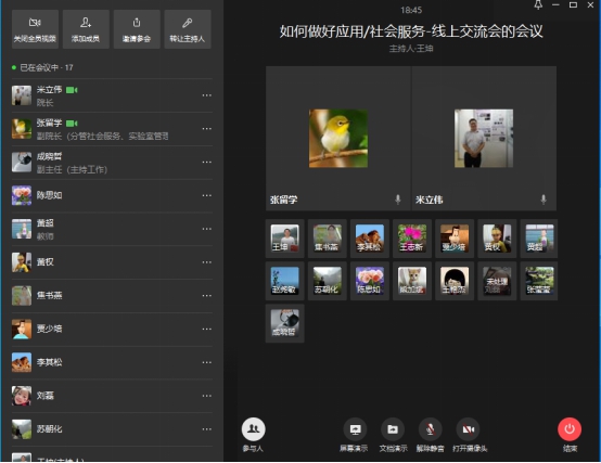 5月8日,公司就如何做好社会服务工作进行了动员和经验交流,米立伟经理主持召开本次会议,张留学副经理、王志新副主任出席会议,苏朝化教授、黄权教授等近二十位中青年骨干教师参加会议,本次会议通过企业微信以线上会议方式进行。