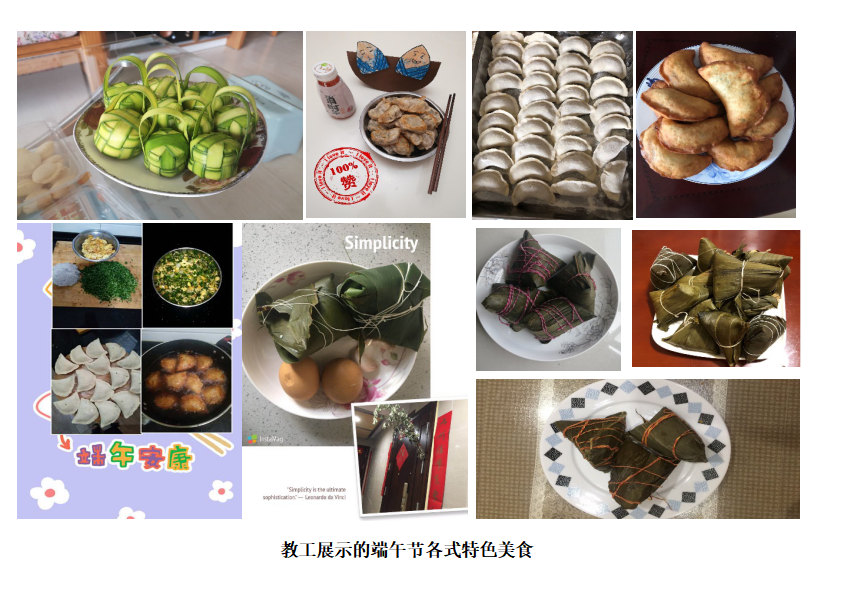 为弘扬中华优秀传统文化,激发爱国主义情怀,增强民族认同感,丰富教工的文化生活,时至端午佳节,结合当前防疫要求,db体育组织开展了主题为“歌颂伟大祖国,抒发爱国情怀;弘扬传统文化,展示端午风俗;礼赞美好生活,展示幸福瞬间。”的端午节风俗展示活动。