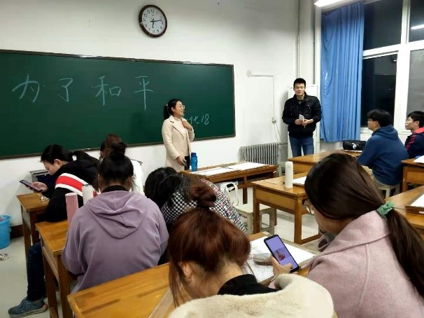 支部教师贾旭于12月4日在应用化学18级开展《为了和平》交流学习主题班会活动,安排员工以宿舍为单位,提前进行观看,并先在宿舍展开讨论,在班会上邀请员工代表进行集体观后感交流讨论,在交流互动时,积极引导员工学习抗美援朝精神,厚植爱国主义情怀。通过以纪念中国人民志愿军抗美援朝出国作战70周年重要契机,把学习伟大抗美援朝精神作为课程思政的重要内容,有机融入课堂教学,与员工共情、共鸣、共振,在日常的教学活动中积极引导员工,实现全员、全程、全方位育人,为党,为国家培养合格的建设者和接班人。