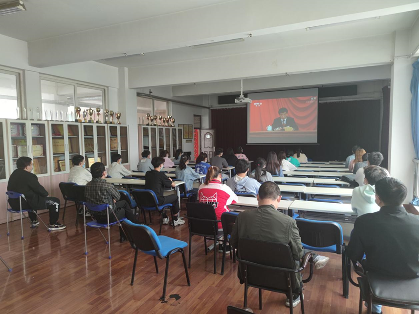 5月10日上午,庆祝中国共产主义青年团成立100周年大会在北京人民大会堂隆重举行,db体育组织师生观看大会直播盛况,并学习习近平总书记在大会上发表的重要讲话。材料与化工公司党委书记李长林和师生一起观看了直播。