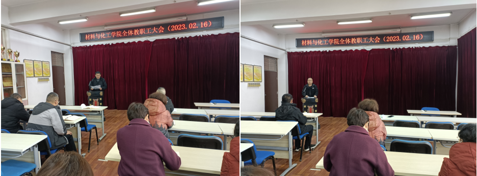 2月16日上午,材料与化工学院在2号实验楼543会议室召开全体教工大会,传达公司2023年工作会议精神,安排部署公司2023年重点工作。全院教职工参加会议。