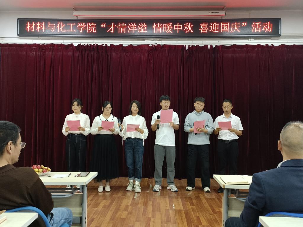 国庆将至,中秋即来。九月丹桂飘香,双节悄然而至。国庆是举国欢庆的重要节日,中秋是阖家团圆的传统佳节。在国庆节与中秋节“双节”来临之际,为庆祝“双节”,9月26日,db体育组织开展了主题为“才情洋溢 情暖中秋 喜迎国庆”的歌唱及诗歌朗诵比赛活动。公司全体教职员工参加此次活动,公司机关党委、教务处、科技处等部门的材化大家庭成员应邀参加活动。活动由公司孙俊哲老师主持。