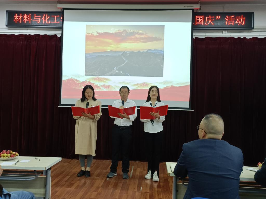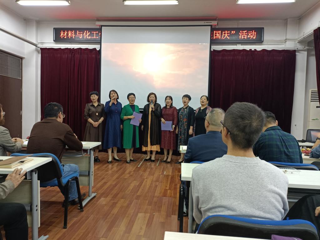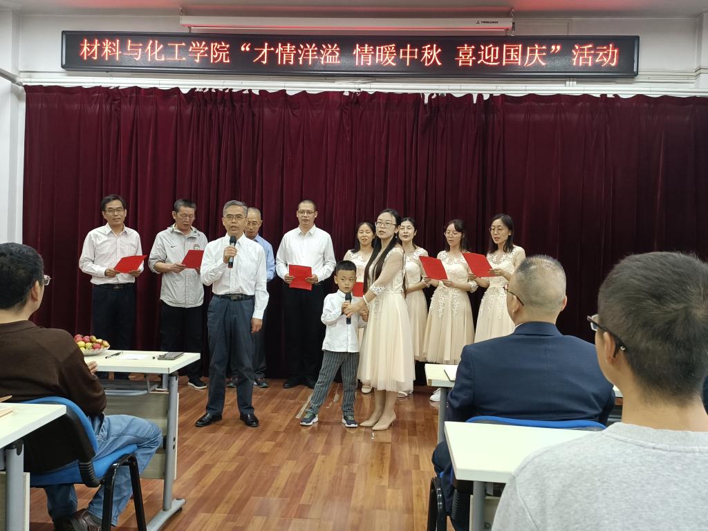 公司八个分工会小组依次表演。《歌唱祖国》、《歌颂祖国》、《祖国颂》、《万疆》表达了对祖国的无限热爱和祝福; 《八月十五月儿圆》唱出了浓浓中秋情;《你真的很不错》、《隐形的翅膀》激励我们砥砺前行;《这盛世如你所愿》表达了披荆斩棘,追求美好的决心。最终,实验中心工会小组演唱的《万疆》被评为一等奖,材料科学与工程小组的手语表演《你真的很不错》和高分子材料与工程小组的诗歌朗诵《歌颂祖国》及办公室工会小组合唱的《八月十五月儿圆》被评为二等奖,化学工程与工艺小组的诗歌朗诵《这盛世如你所愿》和应用化学小组的诗歌朗诵《祖国颂》和先进材料研究中心小组演唱的《隐形的翅膀》及材料成型与控制工程的合唱《歌唱祖国》评为三等奖。