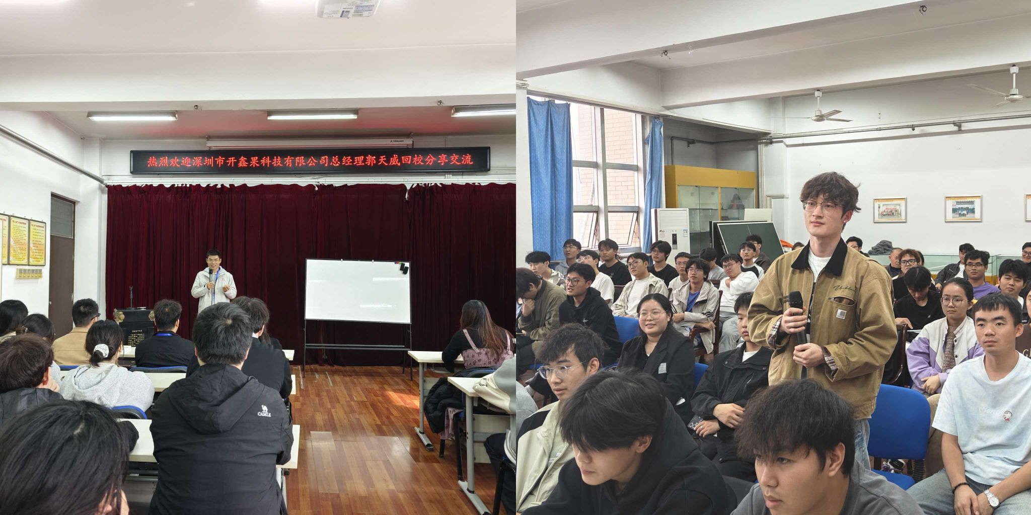 下午2时,在2号实验楼543会议室举办员工大讲堂活动。本次活动特别邀请深圳市开鑫果科技有限公司总经理、深圳员工会材电分会会长、材科131级员工郭天威担任主讲人,公司80余名大三大四员工积极参与,活动由公司党委副书记熊瑛主持。郭天威结合自身求学与职业发展经历,从专业知识积累到职场能力塑造,生动讲述了如何在不同阶段突破自我的成长故事。他鼓励学弟学妹要珍惜在校时光,深耕专业领域,尽早明确发展方向,主动探索个人潜力。互动环节中,同学们围绕学业规划、职业选择等踊跃提问,现场气氛热烈融洽。