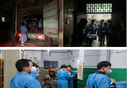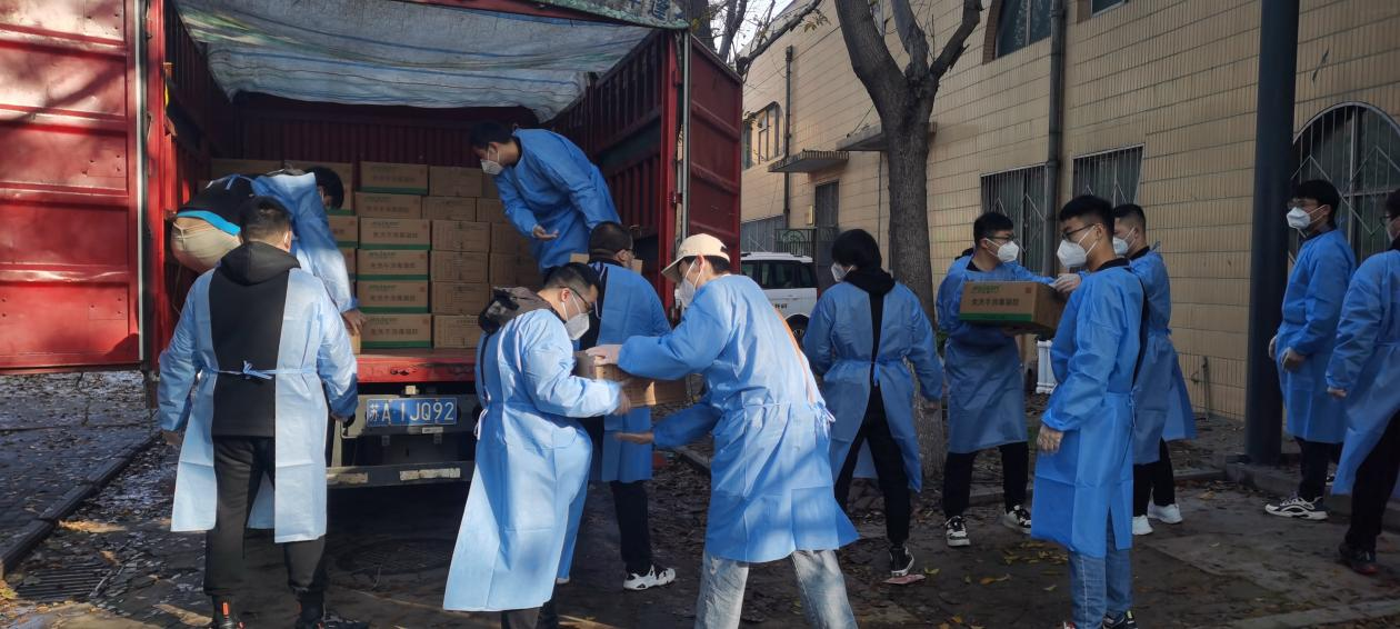 前期,员工陆续离校,为更好地对宿舍进行消杀处理,集团为每一名员工配备编织袋。志愿者们在夜幕下运送分发10000余只编织袋,为同学们整理物品提供方便。暖心的编织袋像是一份礼物,又像是一份安慰,大家齐心协力,编织青春抗疫力量。