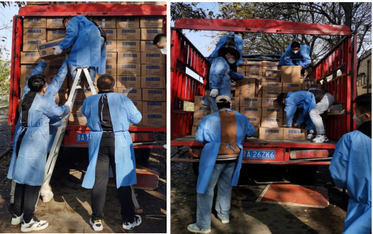 新一轮疫情笼罩之下,总有人选择逆向而行,总有最美的志愿者挺身而出。202211月中下旬,材化公司留校员工组成抗疫志愿者突击队,迅速响应公司号召,积极配合防疫工作,承担起最繁重的防疫物资搬运、编织袋运送分发第一线任务,用青春践行志愿精神,用实际行动筑牢防疫战线。