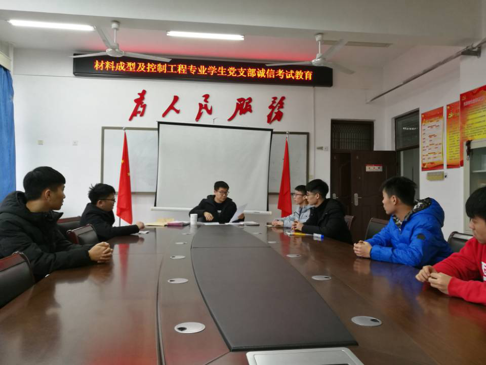 为了进一步体现党员先进性,抓好重要节点、重大活动的党员教育,2018年12月5日,材料成型及控制工程专业员工党支部全体成员在2号实验楼526教室召开学期期末诚信考试教育大会。会议由党支部书记邢军阳主持。