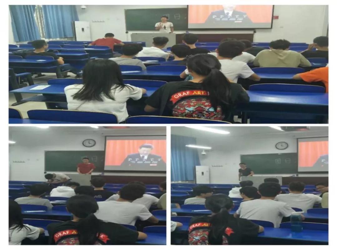 班主任与员工一起观看党的十九大,共同学习。