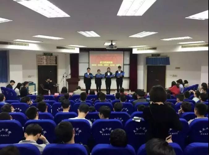 14级优秀毕业生代表张炯炯、侯霖杰、张延翔、丁罗义、曹明艳分别为学弟、学妹讲述自己的考研心得。