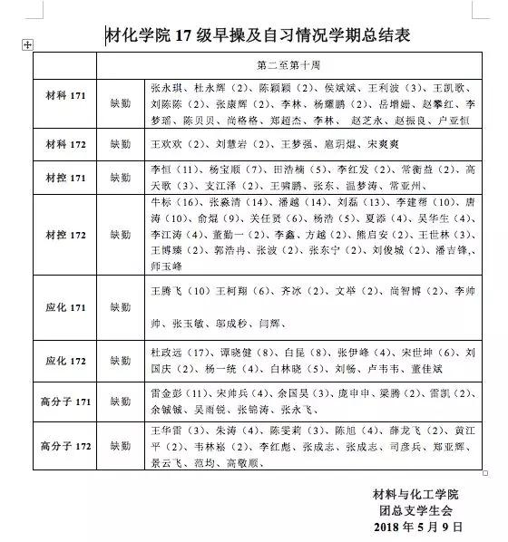 通过对早晚自习缺勤情况的了解,具体到每个员工缺勤原因,并对其进行督促。