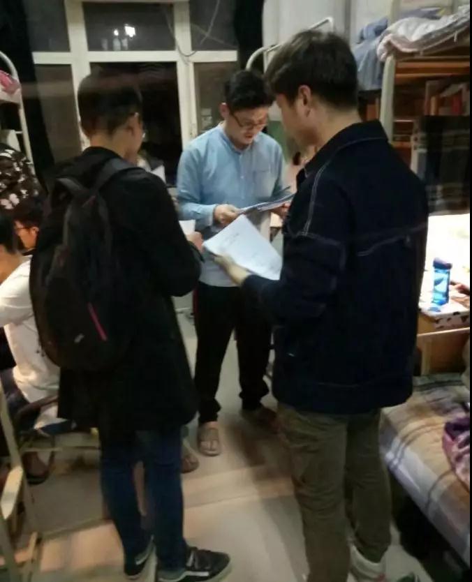 各班主任老师及公司团总支成员走访15级员工宿舍,就材化公司考研调研活动做后续的问卷收集工作。