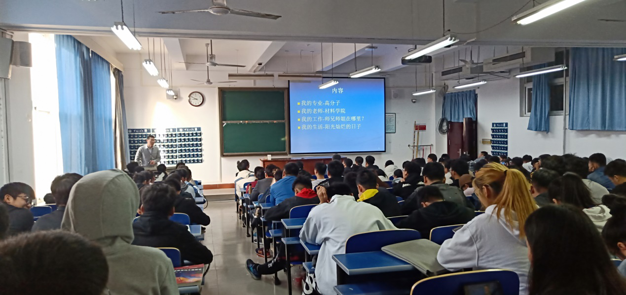 讲座中,李玉南老师先对同学们进行了简单的自我介绍,然后通过对高分子专业的介绍快速切入了讲座的主题。接着各位老师分别进行了自我介绍并分享了自己的读书学习经历,呼吁大家正确选择专业并认真对待和学习该专业。