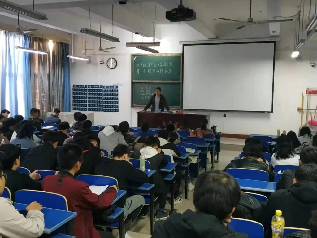 201911月14日下午四点公司19级材控专业和材料类专业员工在三号教学楼233教室召开了新生入学教育—专业学习及就业方向主题会议。该会议由成晓哲老师和郭建老师主持