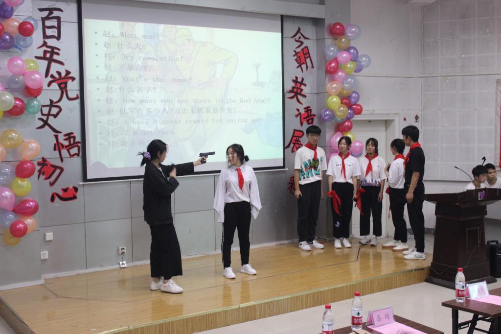 闭幕式以英文配音《觉醒时代》拉开帷幕,演员的声音和口型配合天衣无缝,赢得了在场师生阵阵掌声。英语情景剧《红领少先队》、《金色的鱼钩》,演员们精湛的演技使得师生如身临其境,同时引发同学们对新时代青年精神面貌的思考。情感真挚的英语演讲《七一建党》、《The Communist Party of China is in my heart》教育同学们要心中有党、热爱党,感党恩,跟党走。情景剧《建国大业》和配音《他们死在了少年时》向我们展现了新中国建设过程的艰辛和为新中国建设而牺牲的革命烈士的伟大。情景剧《学习党史交流会》和英语演讲《Spirit of ABCDE》让党史内容的传播更贴近青年受众。此外,闭幕式还穿插了党史知识有奖竞答环节,同学们踊跃参与,活跃了现场的氛围,增加了活动的趣味性。最后公司领导为获奖同学颁奖并合影留念。