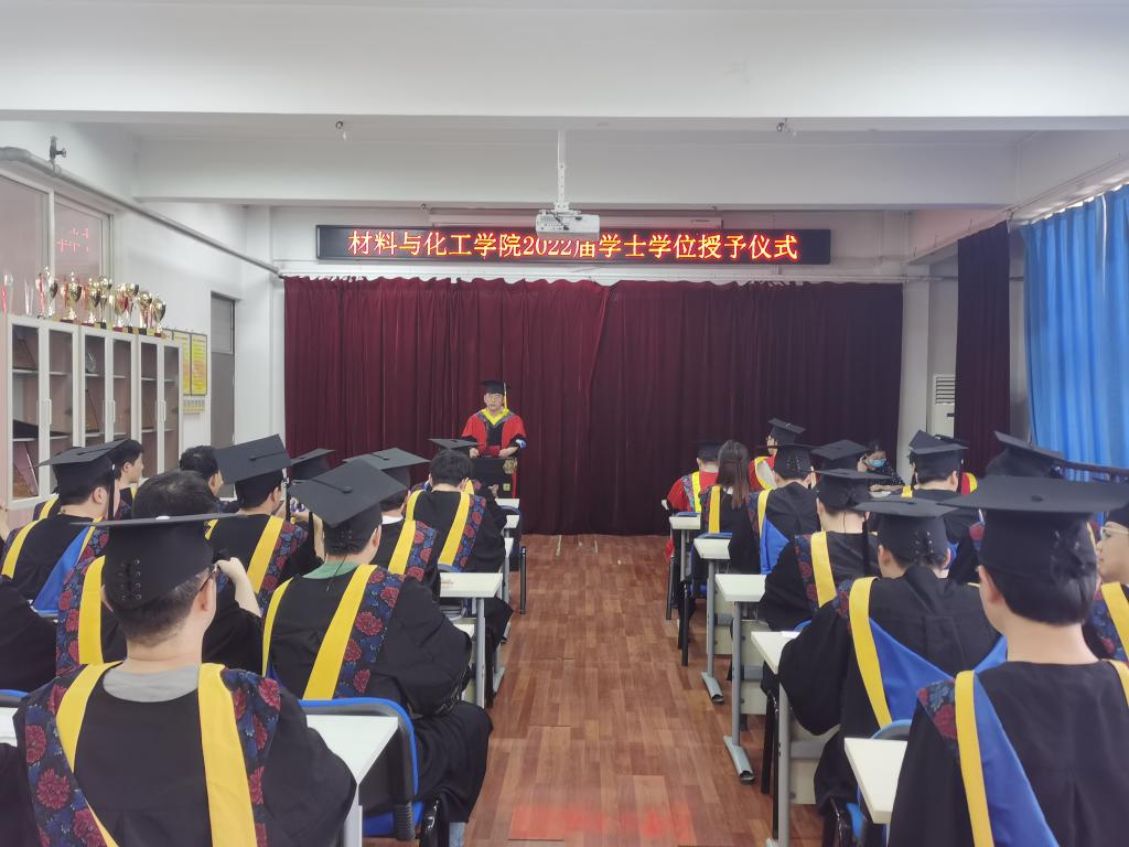 6月2日下午,材料与化工公司2022届毕业生学位授予仪式在2号实验楼543会议室隆重举行。公司领导班子成员和毕业生导师代表、在校毕业生分专业分批次参加学位授予仪式。
