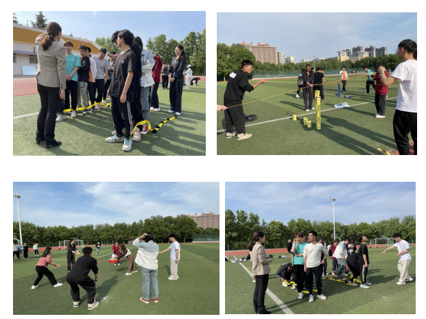 在张玲老师的悉心指导下,参训同学分为两组共同参与了“齐心协力”“击鼓颠球”“袋鼠跳”“叠方块”四项心理素质拓展活动。两组队员密切配合,齐心协力,不断在尝试中累积经验,动作越来越娴熟,协作越来越默契。大家在活动和互动中尽情释放自我,处处充满欢声笑语,每一个动作的变换都折射出团队协作的力量。