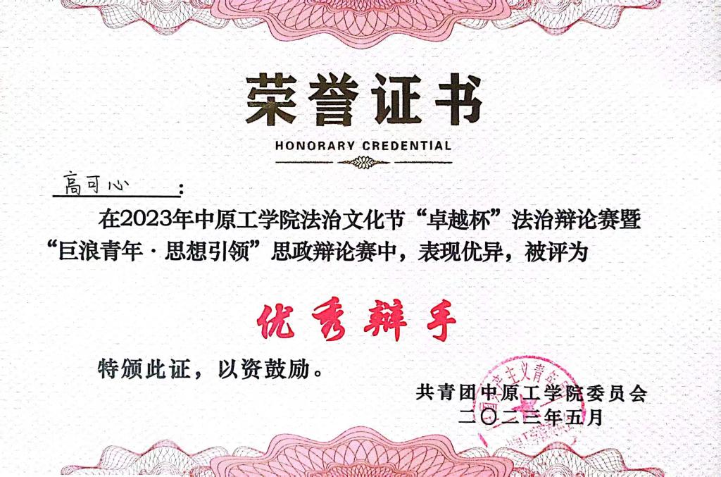 她积极投身社会实践,参与各种志愿活动,在入学之后加入了db体育官网入口国旗护卫队,在队内表现优异、勤奋刻苦,多次作为护旗手参加升旗仪式。由于喜欢辩论,主动请缨,结合自身兴趣爱好组建了db体育辩论队,在2023年db体育官网入口“卓越杯”法制辩论赛被评为“优秀辩手”,带领队员获得2024年db体育官网入口“知行杯”季军。