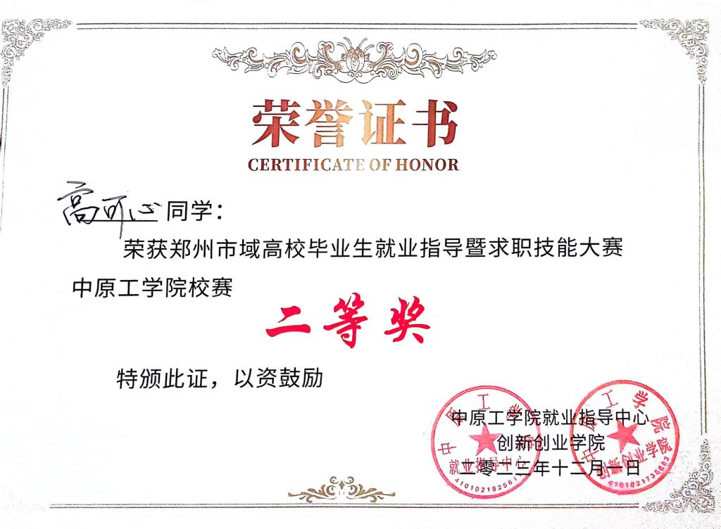 郑州市求职技能大赛db体育官网入口校赛二等奖