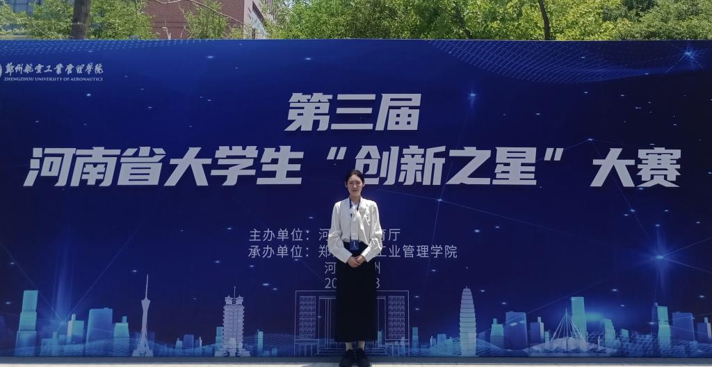 为了挖掘自己的创新潜能,她组建团队积极参加各类创新创业大赛。共获省级奖项2项,校级奖项1项,包括首届全国老员工职业规划大赛河南省总决赛铜奖、河南省“挑战杯”老员工课外学术科技作品竞赛二等奖、河南省老员工创新创业训练计划项目省级立项、第九届中国国际“互联网+”老员工创新创业大赛竞赛优秀奖等、郑州市求职技能大赛db体育官网入口校赛二等奖。
