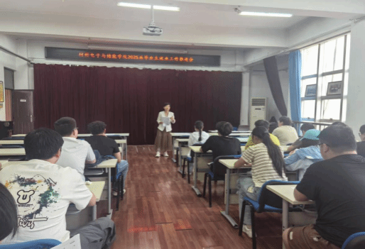 会上,熊瑛结合当前就业环境,深入分析了2025届毕业生面临的机遇与挑战。她通过详实的数据,介绍了公司近两年毕业生的就业去向、行业分布及薪资水平,帮助同学们更清晰地把握就业趋势。同时,结合“如何制作一份合格的简历”,从简历制作、面试技巧、职业规划等方面进行了细致讲解,鼓励同学们积极准备,主动出击,以充分准备迎接职场挑战。