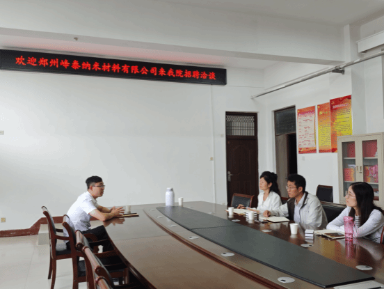 9月12日上午,郑州峰泰纳米材料有限公司行政经理李东晓一行来公司招聘洽谈。公司党委副书记熊瑛、高分子系主任宋梦、2026届毕业班辅导员惠显帅参加座谈。