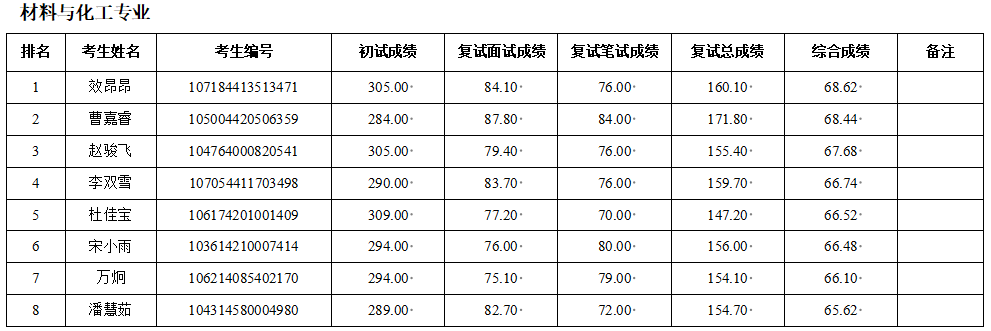 按照研究生招生工作安排,公司于4月22日进行了调剂第八批复试,现对考生综合成绩进行公示: