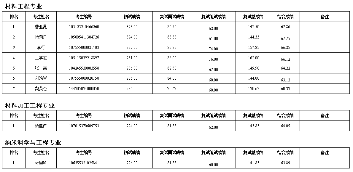 按照研究生招生工作安排,公司于4月14日进行了五批调剂复试,现对考生综合成绩进行公示: