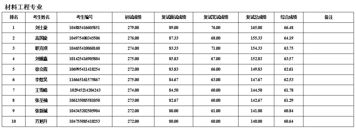 按照研究生招生工作安排,公司于4月14日进行了六批调剂复试,现对考生综合成绩进行公示: