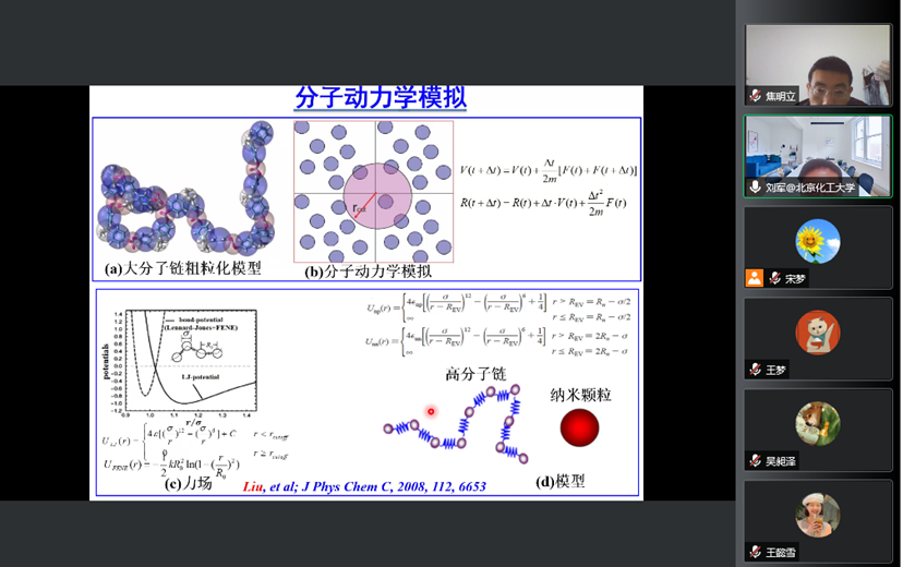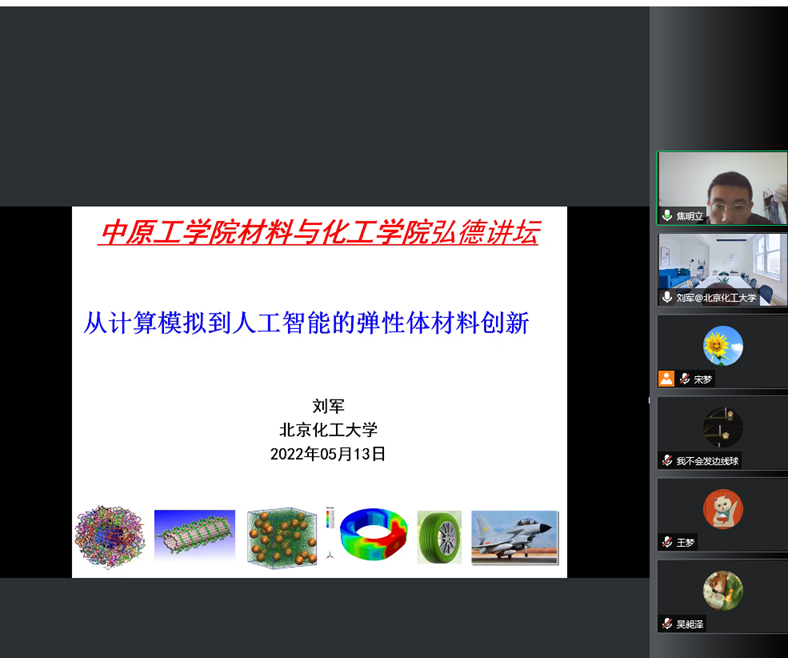 2022年5月13号上午,应公司科技处、db体育和先进材料研究中心邀请,北京化工大学人工智能交叉研究中心博导、国家优秀青年基金获得者刘军教授以“从计算模拟到人工智能的弹性体材料创新”为题,为db体育、先进材料研究中心及其他院部百余名师生做线上专题学术报告。报告会由db体育副经理焦明立主持。