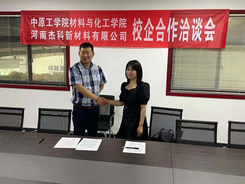 20217月13日,公司db体育与河南杰科新材料有限公司签订实习基地共建合作协议。双方按照“真诚合作、资源共享、重点推进、互利共赢”的原则,发挥各自优势,通过多形式、多层次的交流与合作,建立长期稳定的合作关系,共同推进db体育和河南杰科新材料有限公司快速发展。
