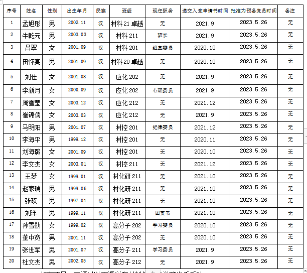 为了加强对发展党员工作的民主监督,确保党员发展质量,现将公司2024年上半年预备党员孟旭彤等同志有关情况公示如下: