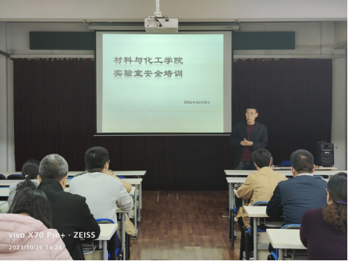 10月26日,主管实验室工作的焦明立经理为全体实验室管理人员做了实验室安全培训,重点讲解了材化公司风险评估表的内容,并组织参观了实验室管理中心的安全主题展览。