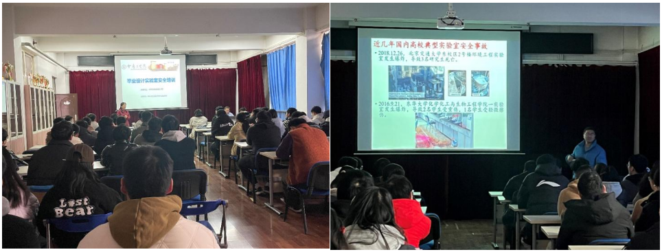 会上,朱根兴老师首先强调了开展本次毕业设计实验室安全培训的目的和意义,随后介绍了材料实验测试中心下属教学实验室和教师科研实验室的基本概况,并通过近几年国内高校典型实验室安全事故的案例讲解,结合实际数据和图片内容,详细分析了事故发生的具体原因,希望通过这些惨痛的事故案例,能引起同学们对实验室安全的高度重视。最后,朱根兴老师又详细讲解了进入实验室开展毕业设计实验的有关重点注意事项,并告诫全体员工一定要牢固树立实验室安全意识,进入实验室必须严格遵守公司、公司的安全管理制度和实验室准入制度,认真学习安全常识和必备技能,在保证生命、财产安全的前提下圆满完成毕业设计,顺利毕业。