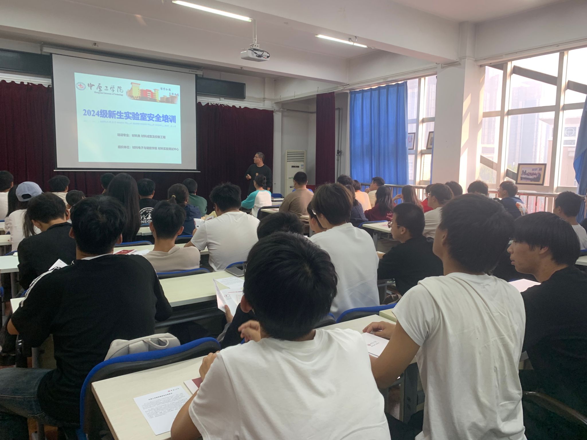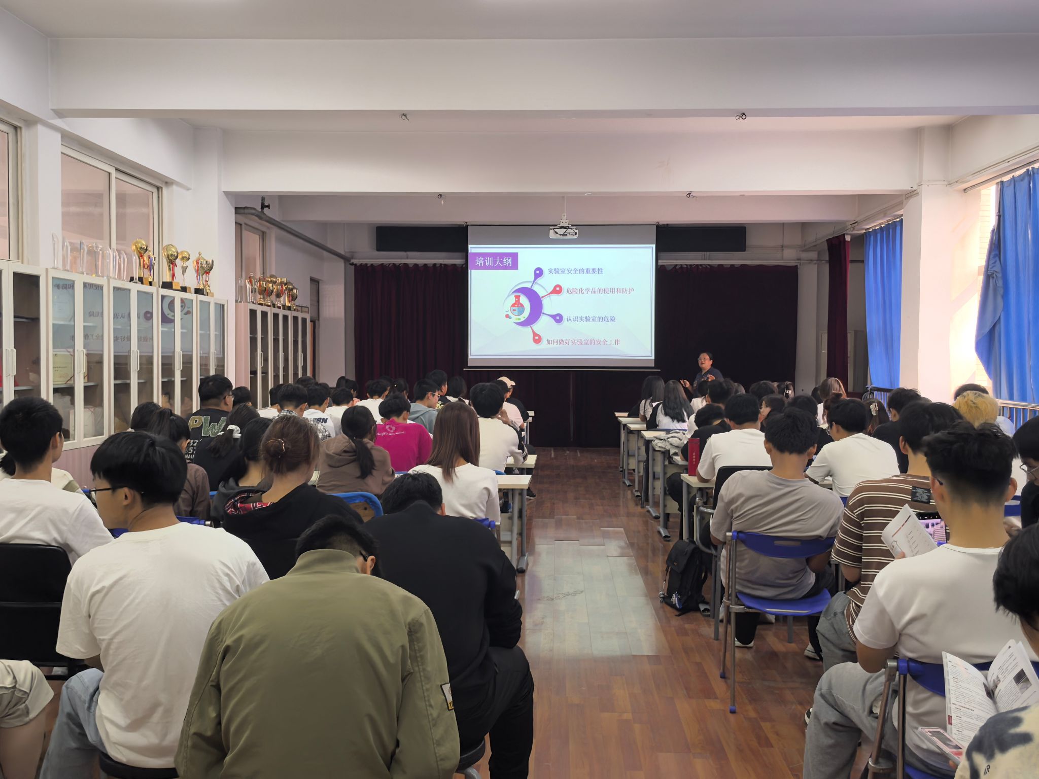 为积极响应公司2024年“实验室安全文化宣传月”活动,进一步增强公司员工实验安全意识,2024年10月15日下午,公司材料实验测试中心和化学实验中心在2号实验楼543举行2024级本科生实验室安全教育培训。本次安全教育培训会由材料实验测试中心主任朱根兴和化学实验中心主任李英华主持,公司材料类、材料成型及控制工程、应用化学、化学工程与工艺五个专业的220名2024级本科生参加了本次培训会。