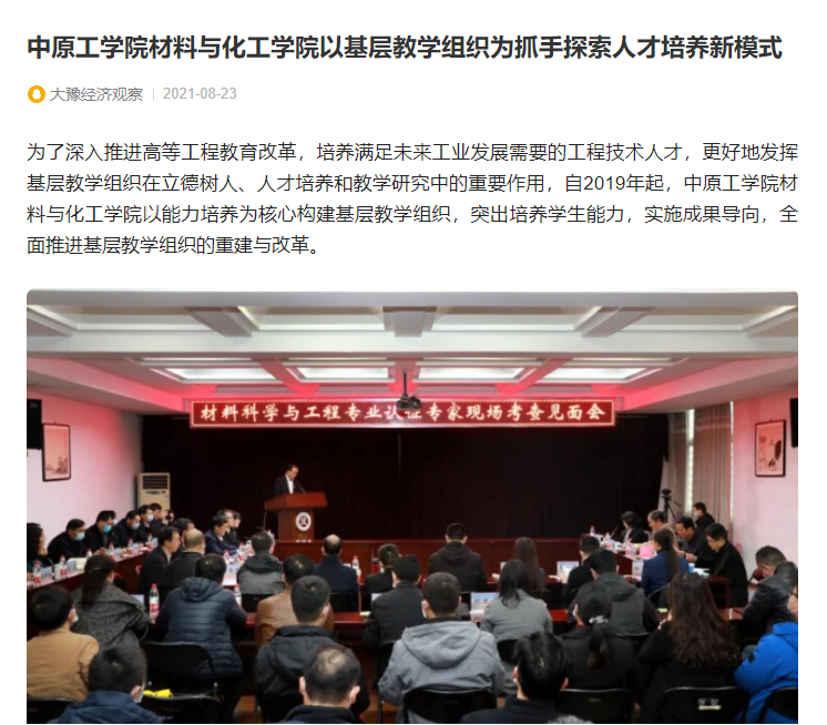 2019年河南省高等公司公司产品改革研究与实践项目“工程教育认证背景下基于能力培养构建基层教学组织的探索”研究成果