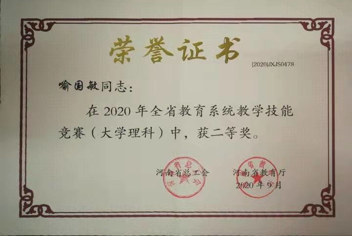 9. 刘国群,张雪丽,焦书燕,吴学领. 成果名称:专业软件在结构化学课程教学中的应用,db体育官网入口,2021.11.