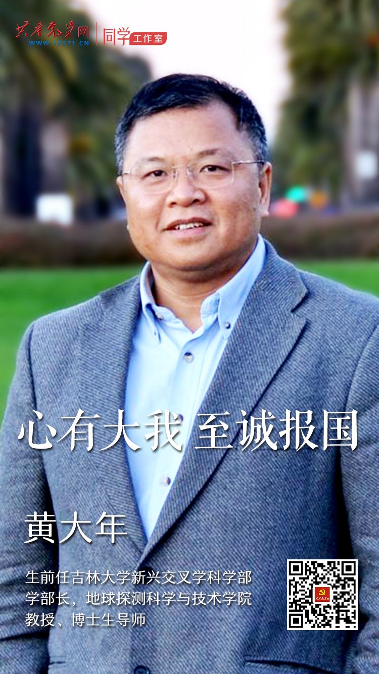 黄大年,男,广西南宁市人,1958年8月生,汉族。2009年12月,黄大年放弃了在英国优厚的待遇,怀着一腔爱国热情返回祖国,出任吉林大学地球探测科学与技术公司教授。八年时间,他带领团队在航空地球物理领域取得一系列成就。2017年1月8日,黄大年因病逝世,享年58岁。