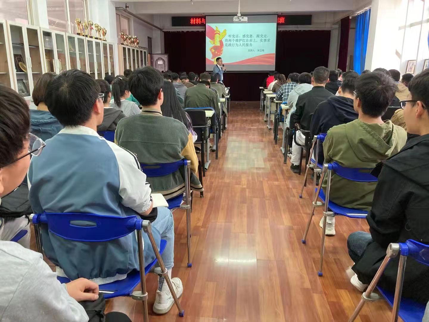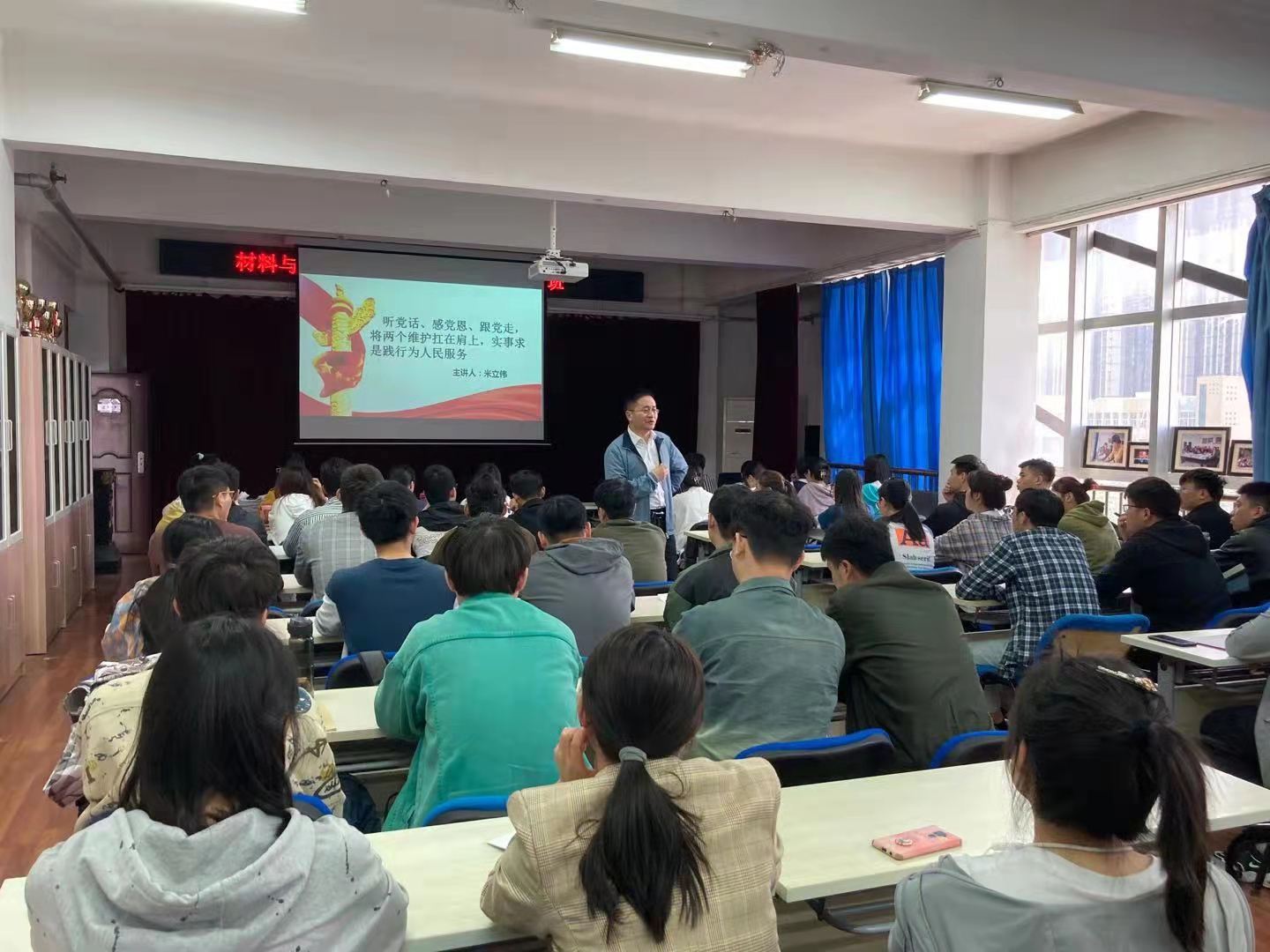 4月28日,按照db体育党委的部署,在2号实验楼543举行了“听党话,感党恩,跟党走,将‘两个维护’扛在肩上,实事求是践行为人民服务”的党课学习交流活动。本次党课分享交流由db体育经理米立伟教授作为分享人,公司辅导员、员工干部、入党积极分子等一百余名师生与会聆听。