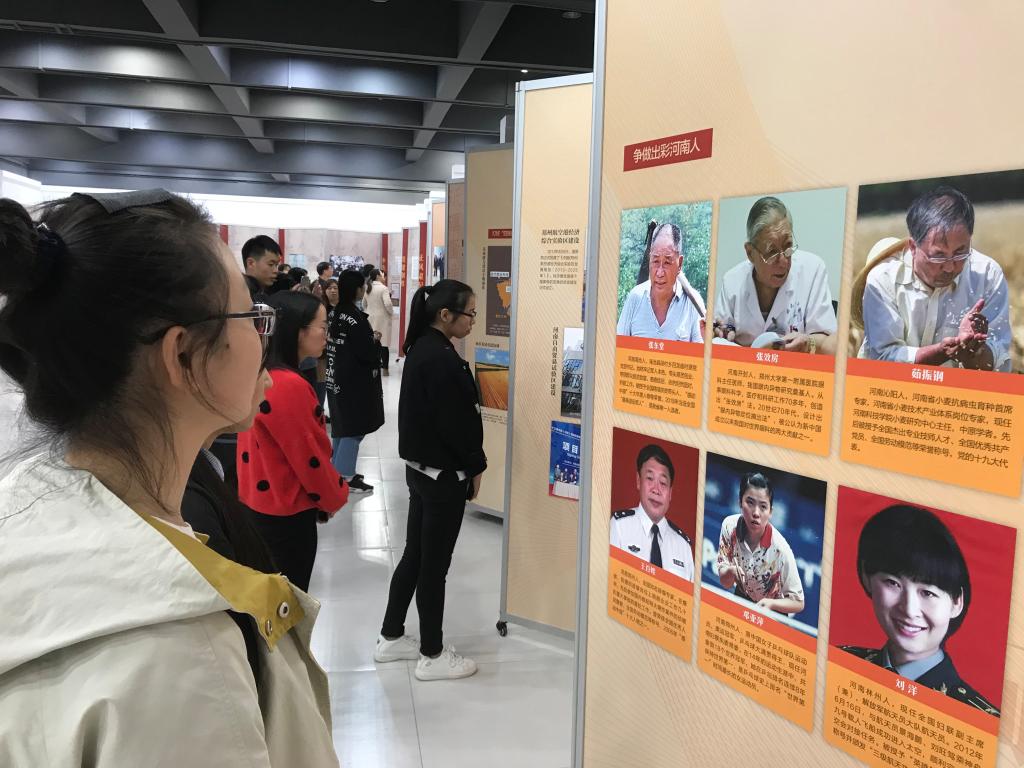 本次展览共分五大章节,第一部分理论探索讲述了马克思主义最初的传播阶段,第二部分理想信念描述了马克思主义如何中国化,为我党继续前进做坚实的理论后盾。第三部分讲共产党人不懈奋斗的革命历史。第四部分牢记宗旨展开讲解了习近平主席的三个坚持,如何寄情于民,不断把为人民造福事业推向前进。第五部分自身建设和第六部分出彩中原则是在完成“两个一百年”奋斗目标上交代了河南的使命感,我们要打赢三大攻坚战,打好四张牌。