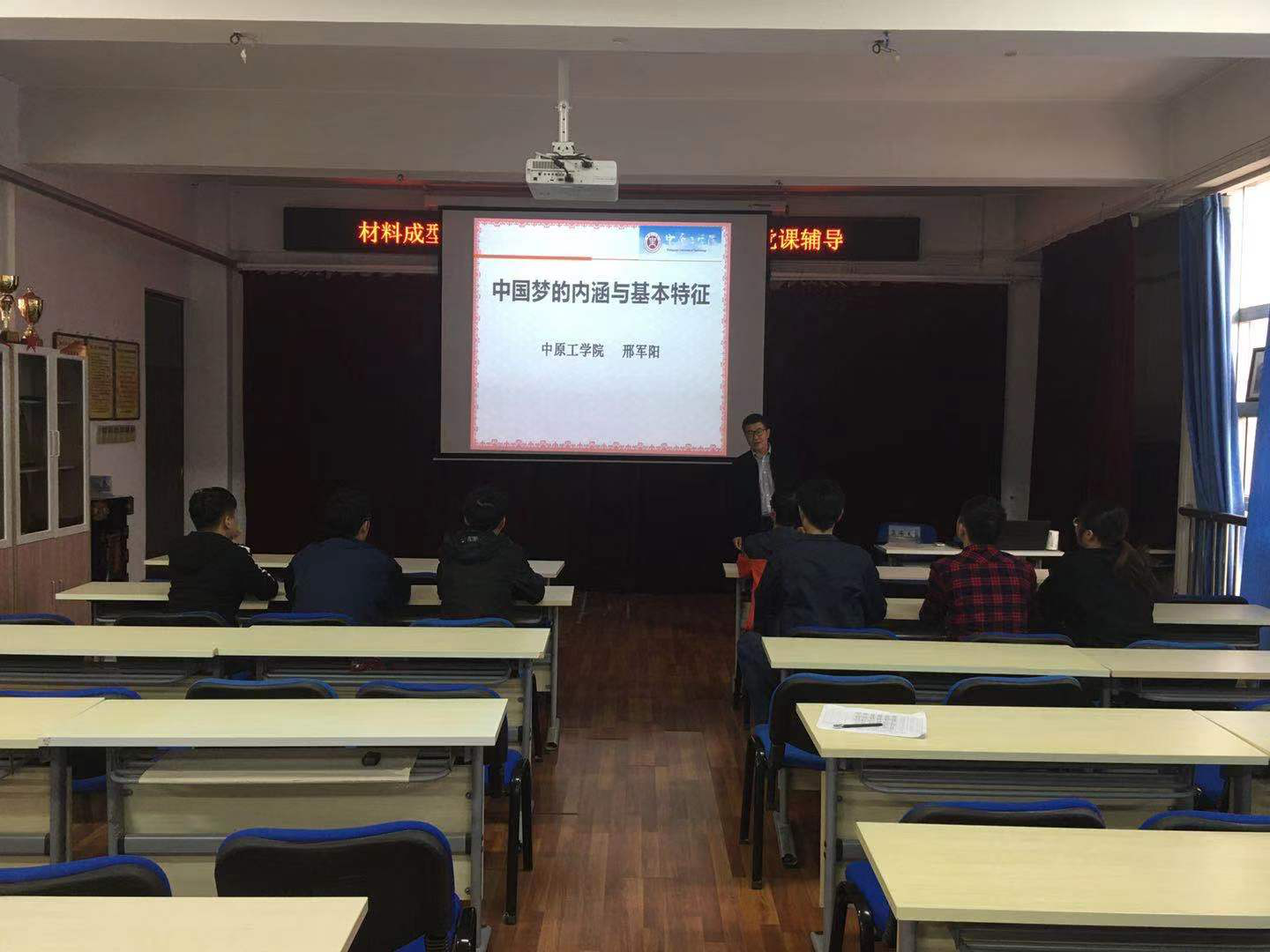 材料成型及控制工程专业员工党支部书记邢军阳以中国梦的内涵和基本特征为题,他表示在国家建设越来越富强的路上,“国家富强、民族复兴、人民幸福”所代表的中国梦仍然是我们所追求的理想。