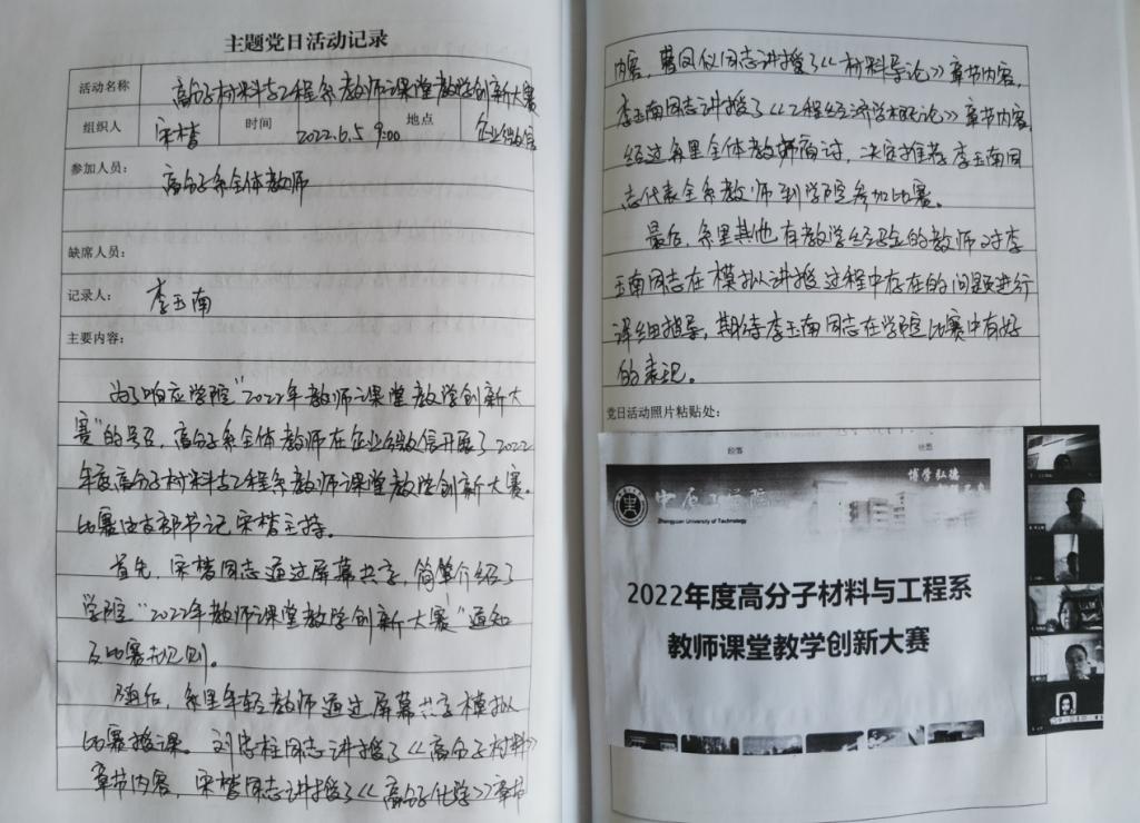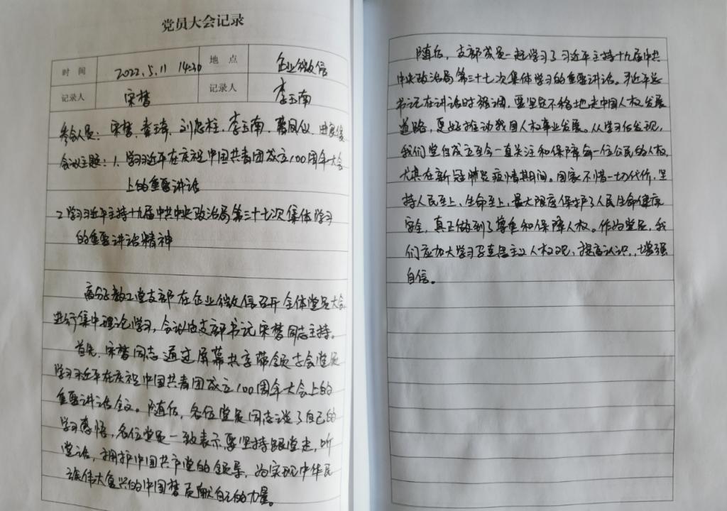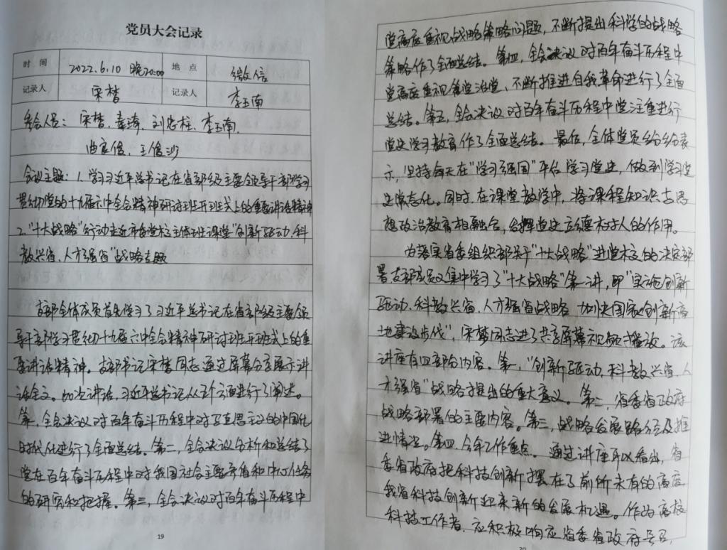 学习了“习近平总书记在2022年春季学期中央党校(国家行政公司)中青年干部培训班开班仪式上的重要讲话精神”、“习近平新时代中国特色社会主义思想学习纲要”、“习近平在庆祝中国共青团成立100周年大会上的重要讲话”、“习近平主持十九届中共中央政治局第三十七次集体学习的重要讲话精神”、““十大战略”行动走进市委党校主体班课堂——“创新驱动,科教兴省,人才强省”战略专题”。召开组织生活会1次。